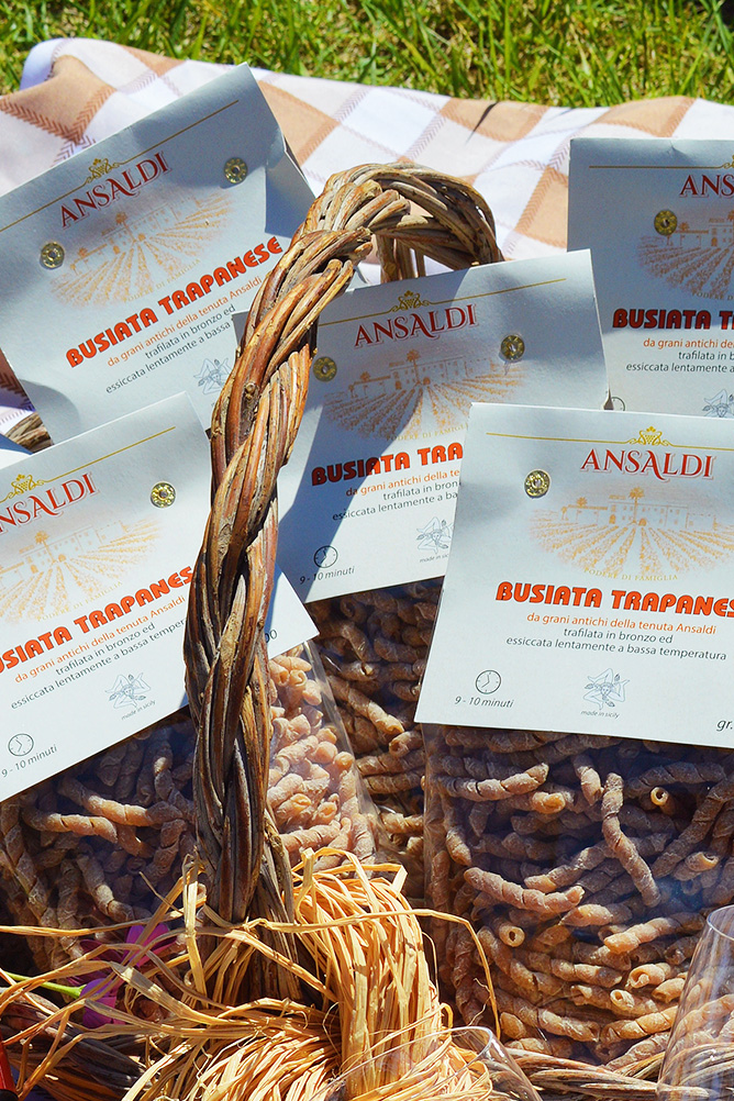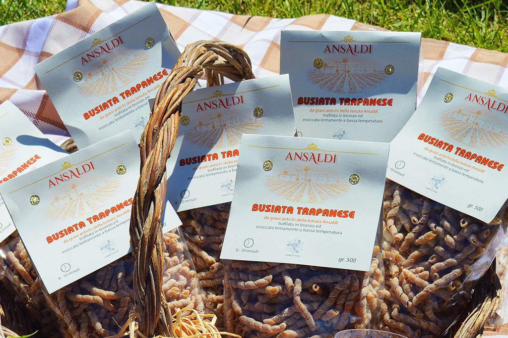 Pasta secca tradizionale siciliana, prodotta con i grani antichi dela Tenuta Ansaldi. Le Busiate prendono il nome dal buso, ossia lo stelo della spiga con cui la pasta veniva arrotolata per dar vita alla sua forma finale.